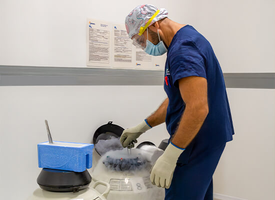 Los embriones se pueden transferir en fresco o en casos en que la receptora no pueda viajar, no esté lista para transferir o se vaya a realizar estudio genético preimplantacional (PGT) a los embriones, se pueden vitrificar (congelar) para su almacenamiento y posterior transferencia.